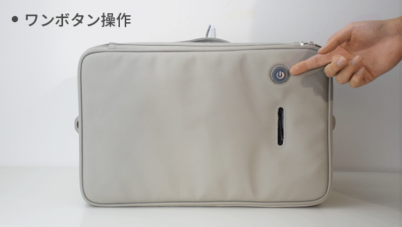 3.棚を除菌バッグに入れ、電源コードを差し込みます。通常使用しない場合は、除菌バッグを折りたたむことができます。