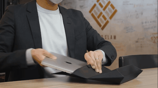 しまうのも一瞬。わざわざたたむという動作は必要ありません。ノートPCをケースに入れるだけでリフト部分は元に戻ります。