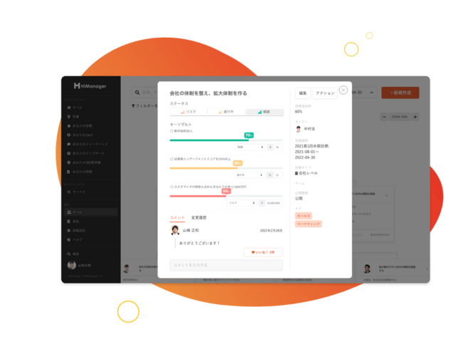 HiManagerは、ハイブリッドワーク時代に必要な人事評価を提供しており、従業員エンゲージメントを向上させ、輝く組織作りを可能にします。