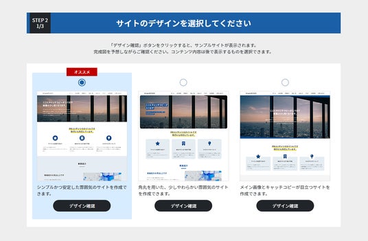 デザインの選択や情報入力がスムーズに行えるよう、お申し込み画面のUIを改善しました。また、お客様側の情報入力の負担を軽減するために、AIがホームページに適した画像や、キャッチコピーなどのテキストを提案する機能もご用意しています。