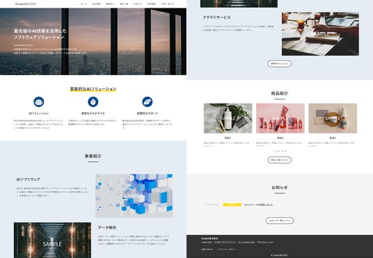 作成できるホームページのデザインを一新しました。「PRコンテンツ」 「事業紹介」「商品紹介」など、掲載可能なコンテンツも新たに追加し、これまでよりもさらに充実した内容のホームページが作成可能になりました。