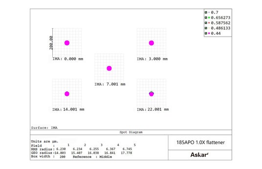 - Askar185APOは大口径185mm、焦点距離1295mmの3群3枚の対物レンズを搭載したEDアポクロマート屈折鏡筒です。