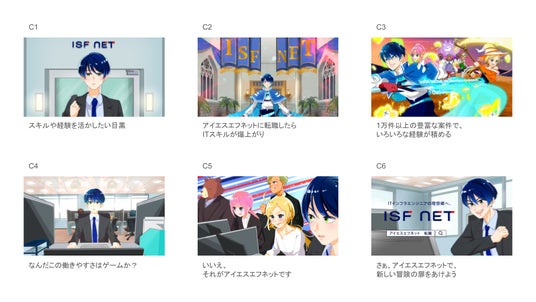 CMに登場したキャラクターの詳細やアイエスエフネットの働きやすさの理由をご紹介しています。