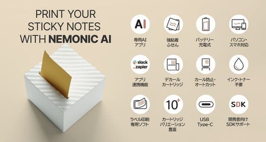 株式会社JBSは7月31日より、chatGPTで構築されたプリンター"nemonic AI" を日本最大級のクラウドファンディングサイトMakuakeで先行販売しています。シリーズ最新製品の日本向けの販売は今回が初めてとなります。