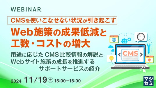 マジセミ株式会社は「CMSを使いこなせない状況が引き起こす、Web施策の成果低減と工数・コストの増大」というテーマのウェビナーを開催します。
