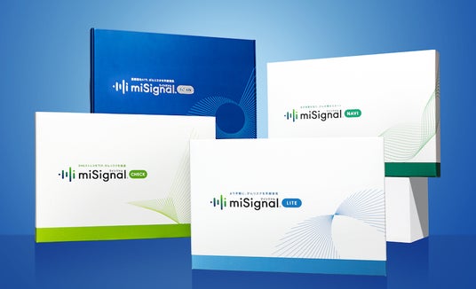「マイシグナルシリーズ」は、予防と早期発見につなげる、がんリスク検査です。このシリーズはマイクロRNA×AIでがんリスクを高精度に評価する検査「マイシグナル・スキャン」、より手軽にがんリスクを評価する検査「マイシグナル・ライト」、がんに特化した遺伝子検査「マイシグナル・ナビ」、DNAダメージをモニタリング・予防につなげる検査「マイシグナル・チェック」で構成されています。どの検査も尿やだ液を採取するだけで、体に負担なく検査することが可能です。4つの検査を通じて、自らの体質的なリスクを知り、日々のDNAのダメージをモニタリングすることで発症予防をサポート。それでも防ぎきれないがんを早期発見することを一気通貫でサポートし、がんの予防と早期発見を促進することを目指した包括的ながん対策です。詳細はWebサイトをご覧ください。 https://misignal.jp/