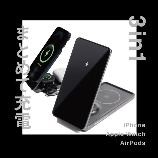iPhone、AirPods、Apple Watchの3種類のデバイスを同時に急速充電できる「3in1 ワイヤレス充電器」の最新モデルがこちら。