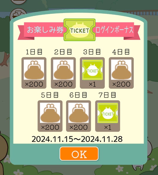 ※期間中は表示されている7日分のログインボーナス全て獲得すると1日目から再度獲得可能となります。