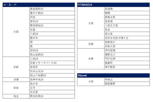 2024年11月1日時点「株式会社COSPAウエルネス」の提携店舗