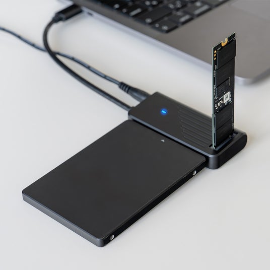 M.2 SSDとSSD/HDDが一緒に使える本製品はACアダプター付属のインターフェース変換アダプターです。M.2 NVMe SSDと一緒に2.5インチのSSD/HDDや3.5インチのHDDを接続できるため、お手持ちのPCで使用するドライブのアップグレードやデータの移行、バックアップなどに最適です。