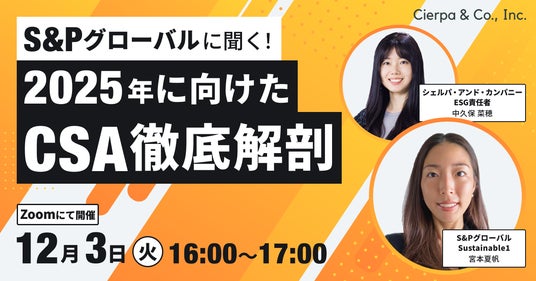 また、このたびの連携開始を記念して、2024年12月3日にウェビナーを実施いたします。S&Pグローバル Sustainable1の宮本夏帆氏がゲスト登壇し、2025年に向けた「CSA」対策として、回答トレンドや対応における課題と対策などに関してご説明します。