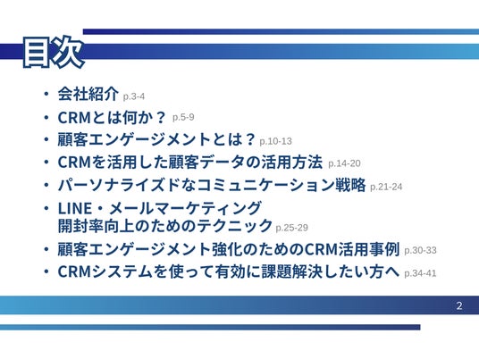 また、LINE・メールマーケティングにおける開封率向上のためのテクニックについても取り上げており、CRMを導入して顧客データの活用法を学びたいと考えている方や長期的な顧客関係を構築したい方にはおすすめの内容です。