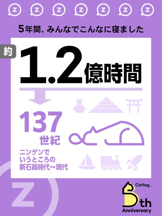 5年間、みんなでこんなに寝ました1.2億時間=137世紀(ニンゲンでいうところの新石器時代~現代)