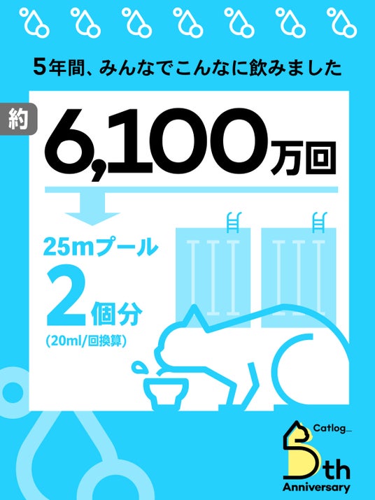 5年間、みんなでこんなに飲みました6,100万回(25mプール2個分)