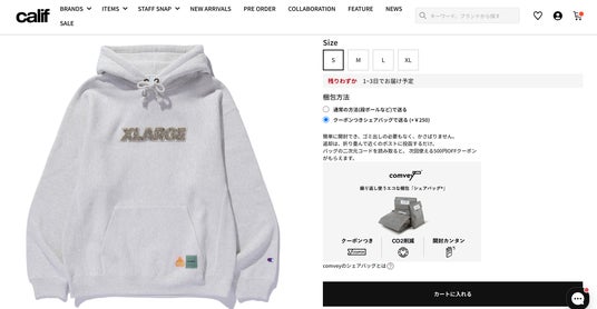 株式会社comvey(コンベイ、本社:東京都中央区、代表取締役:梶田伸吾)は、「XLARGE」・「X-girl」・「MILKFED.」・「SILAS」などストリートアパレルブランドを展開する株式会社ビーズインターナショナル(本社:東京都目黒区、代表取締役社長:西方雄作)の公式オンラインストア「calif」(https://calif.cc/)に、郵便ポストに返却できるリユース梱包「シェアバッグ(R)︎」およびオペレーションシステムが導入されたことをお知らせ致します。本サービスの導入により、配送で発生する梱包ゴミを最小限に抑え、ダンボール回収やゴミ焼却時に発生するCO2排出量を85%以上削減し、脱炭素化を推進することが可能となります。