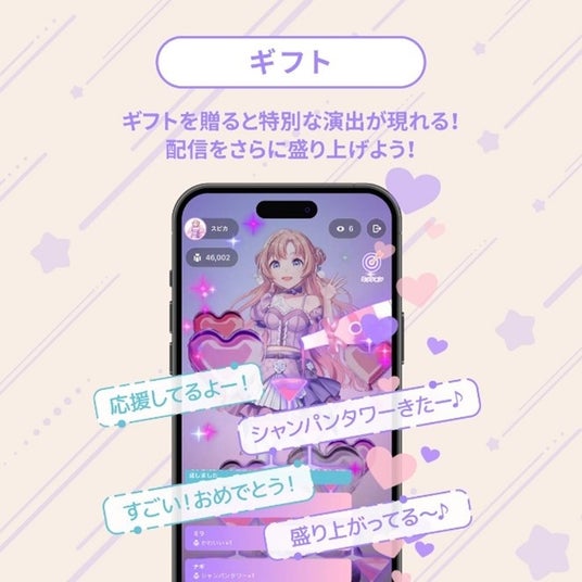 バーチャルライブ配信機能の追加により、これまでのアバターとコミュニティ機能を通じたユーザー同士のコミュニケーションに加え、バーチャルキャラクターを利用した配信者(ライバー)とユーザー(リスナー)によるリアルタイムのコミュニケーションが可能となります。