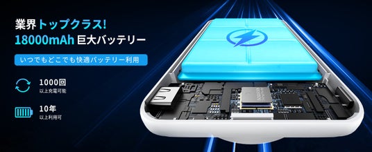 Husbzortのモバイルバッテリーは18000mAhの大容量を誇り、1回のフル充電でスマートフォンやタブレットなど、複数のデバイスを何度も充電可能。急速充電にも対応しており、Power Delivery (PD) 22.5W出力により、一般的なワイヤレス充電器の約3倍の速さでデバイスを充電します。忙しい日々にスピードを求める方や、長時間の外出が多い方に理想的なアイテムです。