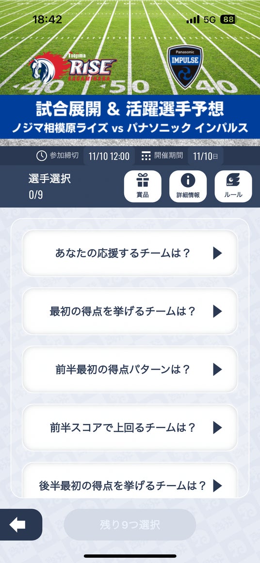 Xリーグ 2024 秋季リーグ第6節 ノジマ相模原ライズ vs パナソニック インパルスの試合展開&活躍選手予想をスポーツ予想アプリ「なんドラ」で開催!