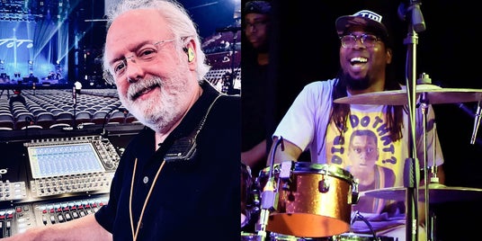 TOTOのPAエンジニアを務めるKen Freeman(写真左)とツアーメンバーの Robert “Sput” Searight(写真右)