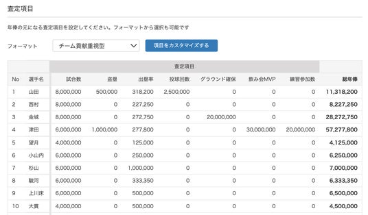 年俸査定サービスは、teamsに登録した成績データを用いて年俸査定ができるサービスです。