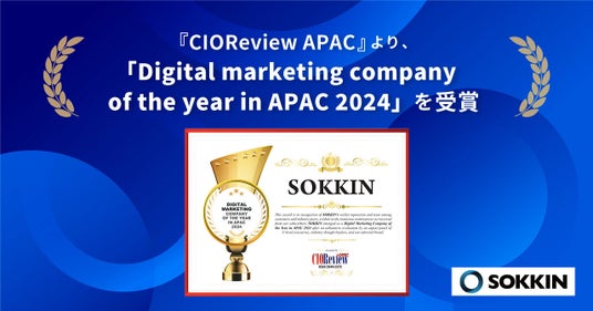 株式会社SOKKIN(本社:東京都新宿区、代表取締役:本間 亮平)は、アジア太平洋地域で権威あるIT専門誌「CIOReview APAC」より、「Digital marketing company of the year in APAC 2024(アジア太平洋地域の年間最優秀賞デジタルマーケティング企業-2024)」を受賞したことをお知らせいたします。