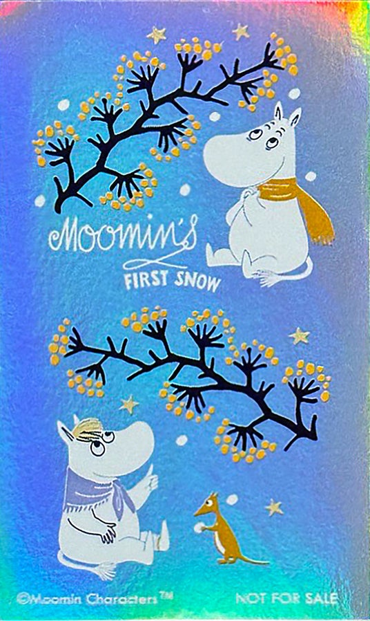 ムーミン谷の雪景色の中で過ごすムーミンたちの楽しそうな表情と、あたたかみのあるデザインが、心に温もりを届けてくれます。