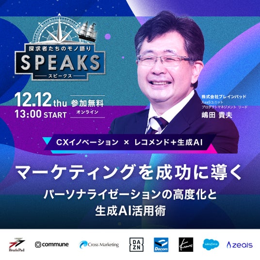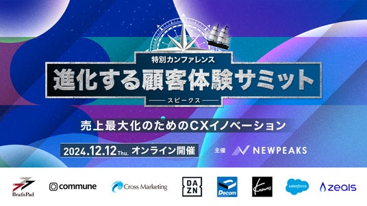 株式会社ニューピークス(NEWPEAKS.inc)は、番組型カンファレンス「SPEAKS -進化する顧客体験サミット- 」を2024年12月12日(木)にオンラインで開催します。