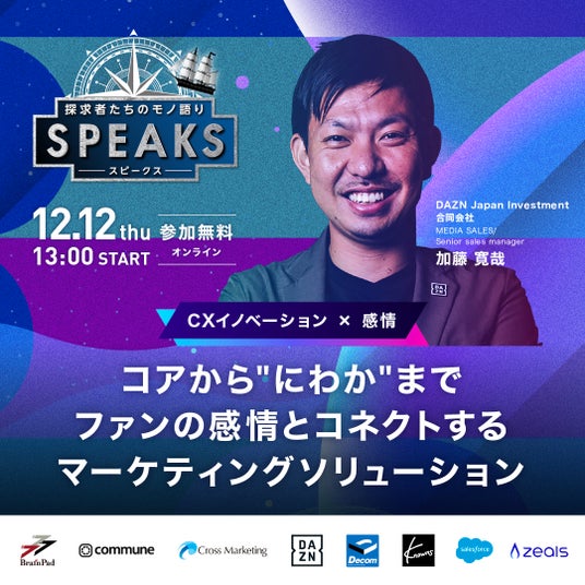 協賛 :ノウンズ株式会社、DAZN Japan Investment合同会社、コミューン株式会社、株式会社クロス・マーケティング、株式会社デコム、株式会社ブレインパッド、株式会社セールスフォース・ジャパン、株式会社ZEALS(順不同)