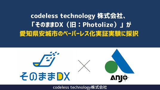 codeless technology 株式会社(東京都千代田区 代表取締役 猿谷吉行 以下「codeless technology」)は、安城市が主催するペーパーレス化推進のための実証実験において、同社の「そのままDX(旧:Photolize)」が採択されたことを発表いたします。この実証実験は、安城市の行政業務のデジタル化を推進し、効率化を目指す重要な取組です。
