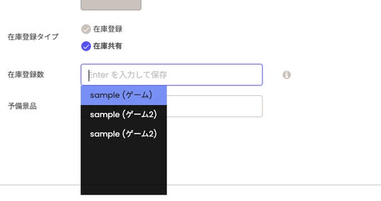 「在庫登録タイプ」で「在庫共有」にチェックを入れます。