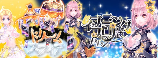 11月13日(水)より、豪華アイテムの獲得に挑戦できる虹色ルーレットに女性用衣装アバター「イブニングフロルドレス」と武器アバター「ドリームスフィア」が新登場しました。