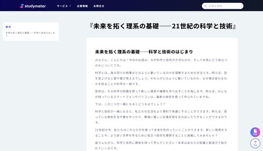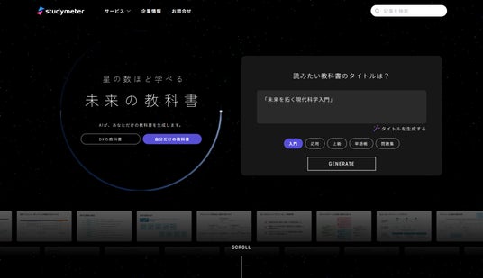 スタディメーター株式会社(本社:東京都千代田区、代表取締役:箕輪旭)は、タイトルを入力するだけで、オリジナルの教科書が自動生成されるサービス「未来の教科書」のトライアル提供を開始しました。