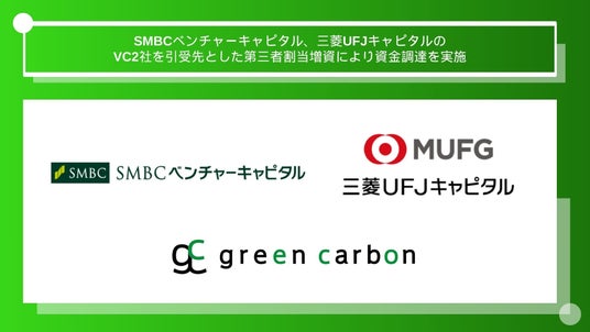Green Carbon株式会社(代表取締役:大北潤、以下Green Carbon(読み:グリーンカーボン))は、SMBCグループの投資部門であるSMBC ベンチャーキャピタル株式会社(本社:東京都中央区、代表取締役社長:佐伯 友史、)、三菱UFJグループの投資部門である三菱 UFJ キャピタル株式会社(本社:東京都中央区、代表取締役社長:小島 拓朗)の2社を新規引受先とした第三者割当増資により、資金調達を実施したことをお知らせいたします。