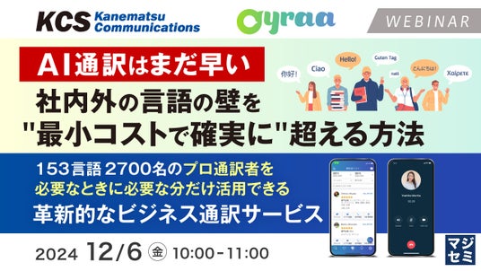 マジセミ株式会社は「「AI通訳はまだ早い」社内外の言語の壁を"最小コストで確実に"超える方法」というテーマのウェビナーを開催します。