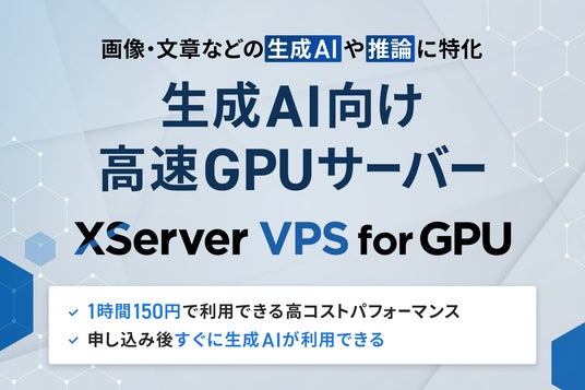 サーバー性能・コスパNo.1の『XServer VPS』、初期費用無料かつ1時間150円で利用できる生成AIに特化した高速GPUサーバーの提供を開始