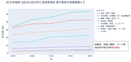中古車販売市場の課題 - 車は見せなければ売れない EC化率3.64%