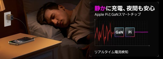 最新のGaNIII技術で、5.4×4×3cmの超コンパクトサイズと88gの軽量ボディを実現。折りたたみ式プラグでバッグにすっきり収納可能、出張や旅行にも最適です。Apple純正充電器と比べても、65%の小型化と55%の軽量化を実現しており、携帯性は抜群です。