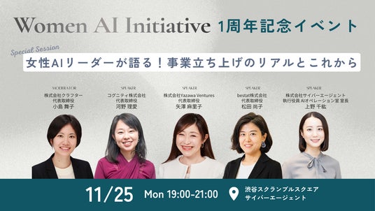 Cynthialy株式会社(所在地:東京都渋谷区、代表取締役:國本知里、以下Cynthialy)が運営する女性AIリーダー人材の育成・推進コミュニティ「Women AI Initiative」は、設立から1周年を記念したイベントを11月25日(月)19時より渋谷のサイバーエージェント本社にて開催することをお知らせいたします。