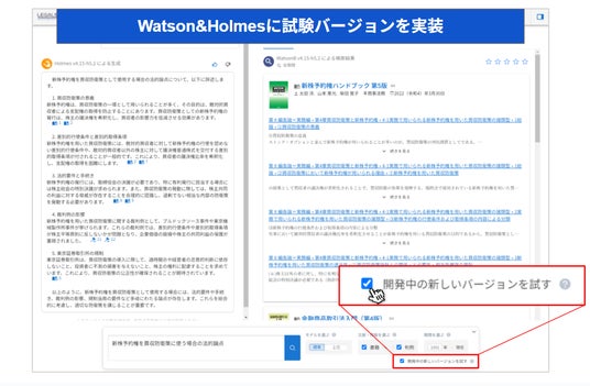 なお、開発中の試験バージョンは、 “Watson & Holmes(ワトソン&ホームズ)” はUI上で「開発中の新しいバージョンを試す」にチェックを入れることですぐにお試しいただけます。