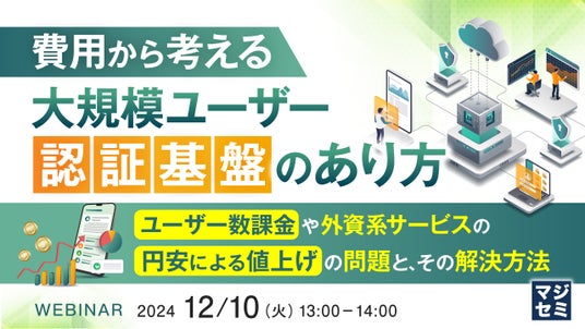 マジセミ株式会社は「費用から考える、大規模ユーザー認証基盤のあり方」というテーマのウェビナーを開催します。