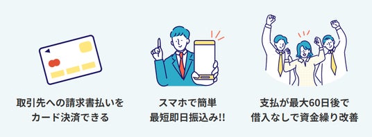 - 新規取引先開拓の際、カード会社の与信が既にあるぶん、社内決裁がスムーズに