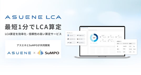 アスエネ株式会社(本社:東京都港区、代表取締役CEO:西和田 浩平、以下「当社」)は新たなサービスとして、簡単で信頼性の高いCFP(カーボンフットプリント)/LCA(ライフサイクルアセスメント)算定サービス「ASUENE LCA」をローンチしました。サービスの第一弾として、当社と一般社団法人サステナブル経営推進機構(所在地:東京都千代田区、代表理事:壁谷 武久 、以下「SuMPO」)は、中小・中堅企業向けのエントリーモデルとして「ASUENE initial LCA supported by SuMPO」(以下、「ASUENE initial LCA」という。)を共同開発しました。