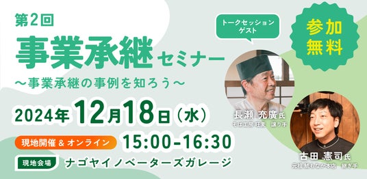 【12月18日(水)開催】オープンネーム事業承継「relay(リレイ)」と愛知県名古屋市が連携し、小規模事業者・中小企業経営者向けの事業承継セミナーを開催!
