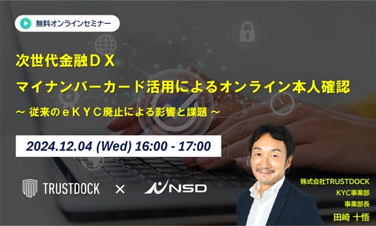 次世代金融DX マイナンバーカード活用によるオンライン本人確認~従来のeKYC廃止による影響と課題~【NSD x TRUSTDOCK共催オンラインセミナー】