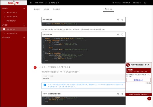 また、実際にお客様の環境におうじて利用するAPIコードが生成されますので、APIの使い方がわからない、または、実際に動くまで時間がかかるという事はありません。