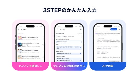 1. 知識や技術がなくても簡単に使える:テンプレで“かんたん3ステップ“生成
