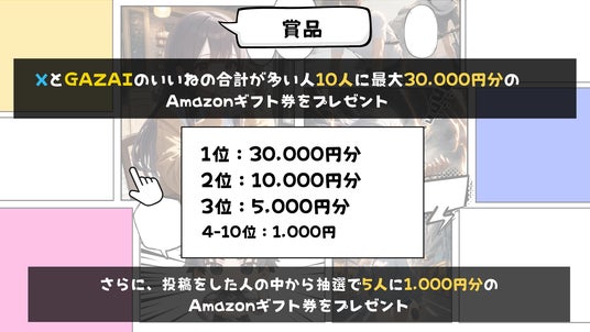 参加したユーザーの中からX及びGAZAIのいいねによる<投票>と<抽選>でAmazonギフト券をプレゼント!