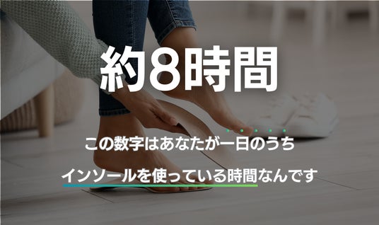 インソールの使用時間は、1日の1/3にも及びます。長時間、足を支えるインソールの重要性がよく分かります。