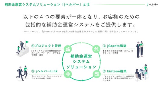 jヘルパーは、「Jグランツとkintoneを使った補助金運営システム」の構築に関する総合ソリューションです