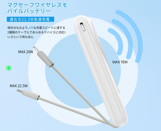18000mAh の大容量を誇る本製品は、1回のフル充電で複数デバイスの充電が可能。さらに、PD22.5W 急速充電に対応し、従来モデルよりも3倍速い充電スピードを実現。忙しい日常の中で、ストレスフリーな充電体験を提供します。